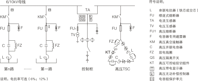 高壓TSC動(dòng)態(tài)無(wú)功補(bǔ)償裝置由主控系統(tǒng)、光纖觸發(fā)電路、高壓晶閘管閥組、脈沖變壓器、電容器、電抗器、保護(hù)單元等組成,核心原理是通過主控系統(tǒng)對(duì)系統(tǒng)運(yùn)行參數(shù)進(jìn)行檢測(cè)、分析、判斷、輸出控制指令激活光纖觸發(fā)電路,再由觸發(fā)系統(tǒng)控制晶閘管閥組的快速導(dǎo)通與開斷,進(jìn)而實(shí)現(xiàn)電容器組的投入和切除,使系統(tǒng)功率因數(shù)穩(wěn)定在設(shè)定值范圍內(nèi)。閥組投切采用過零投切方式,響應(yīng)時(shí)間在20ms以內(nèi),投切過程無(wú)涌流、沖擊,能快速跟蹤補(bǔ)償系統(tǒng)所需的無(wú)功電流。